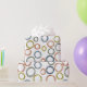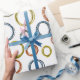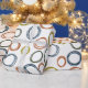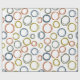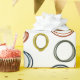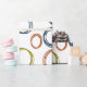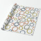 Dieses Verpackungspapier hat ein Boho-Design von überlappenden Kreisen auf Retrofarben grün, braun, blau und grau.