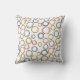 Dieses Kissen hat ein Boho-Design von überlappenden Kreisen auf Retrotönen von grün, braun, blau und grau.