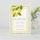 Kündigen Sie Ihre Feier mit diesem Zitrusgelben Zitronen-Italienischen Hochzeit-Save-the-Date an, das frische Früchte-Kunstwerke, eine warme mediterrane Atmosphäre und ein fröhliches Küstenflair enthält. Perfekt für Paare, die eine Zitronenhochzeit oder eine Destination-Feier in Italien planen, bringt dieser helle und aufmunternde Stil einen sonnigen Charme, der den Ton für Ihren Countdown schön setzt.
