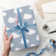 Boho Clouds Sky Simple Gender Neutral Kids Blue Geschenkpapier