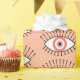 Schöne moderne Boho böse Augen gemusterte Geschenkverpackung mit hübschen Korallen rosa und weißen Augen.