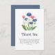Show your appreciation with this charming Baby in Bloom thank you card! The front blooms with a delicate watercolor wildflower bouquet — dusty blue cornflowers, white daisies, pink accents, and fresh greenery — paired with elegant navy "Thank You." Inside: "For showing us with love and sharing in the celebration of our little bundle of joy! We are grateful for all of the gifts, wishes, kind words, love, and support! With love." Includes matching dusty blue envelope. Ideal for boho meadow, gender-neutral, spring garden, or dusty blue showers. Coordinates with invitations, signs, guest book, napkins, plates. Premium fold-over cardstock, fully customizable!