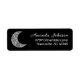 Diese Rücksendeadressen-Aufkleber verfügen über eine boho-farbige Halbmond-Abbildung mit anpassbarem Text für Ihren Namen und Ihre Rücksendeadresse auf einem schwarzen Hintergrund mit weißem Text.