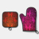 Boho Damask Vibranntes rosa und rotes Muster Ofenhandschuh & Topflappen-Set