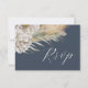 Complete your wedding suite with this elegant boho RSVP card, featuring original watercolor artwork of beige pampas grass, off-white florals, and earthy palm leaves set against a rich dark blue background. The design blends modern sophistication with natural, botanical charm—perfect for rustic, bohemian, desert, or contemporary weddings. Easily customise with your reply details to create a cohesive and stylish addition to your invitation set.