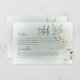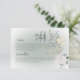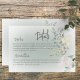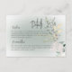 Dieses Hochzeitsdetails Gehäuse Karte Design zeichnet sich durch einen einfachen, sanften oberen lockeren Bouquet aus botanischem Grün mit einem weißen Bogen auf einem weichen grünen, ovalen und weißen Hintergrund. Es ist zart und elegant. Es wurde von Simply Farmhouse Press erstellt und ist Teil der Boho Delicate Greenery Modern Floral Wedding Suite von Karten.