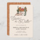 Eine maßgeschneiderte Boho-Wüstenhochzeit bewahrt die Datumseinladung mit einer modernen Wüstenlandschaftsdarstellung mit Sonnenuntergang und Kaktus, modernem Script-Schriftart für Save the Date und vollständig anpassbare Textvorlage für die Namen der Ehepaare und die Hochzeitsinformation. Niedliches Wüstenmuster auf der Rückseite auf einem warmen braunen Terrakotta-Hintergrund.