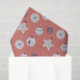 A modern pattern of greyed lavender and deep purple boho holiday ornaments with celestial details on a deep blush background