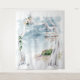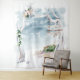 Eine naturalistische, halb-naturalistische Kulisse verbindet Aquarellhimmel, treibende Holzbögen, die mit dem Anstrich von Weinreben verziert sind, und ein kleines Bouquet mit blassen Blume. Ein wenig Sand und Seegras für das Ambiente am Meer. Drei hängende Schilder, um die Etiketten Ihrer Wahl zu halten. Passen Sie den Text und die Schriftart an.