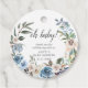 Oh, Baby! Der Babyduschaufkleber Boho ist mit staubigen, blauen und beigen neutralen Blume mit getrockneten Blätter ausgestattet.