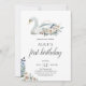 Boho Dusty Blue Blume Swan 1. Geburtstag Einladung