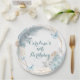Boho Dusty Blue Butterfly Geometric Birthday Paper Plate