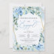 Boho Dusty Blue Floral Gold Geometric Frame Engage Einladung