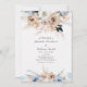 Die Hochzeitsfeier mit böhmischen inspirierten Beige- und staubblauen Blumen lädt zum Verweilen ein. Diese Einladungen sind editierbar und mit geringem Aufwand anpassbar.