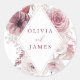 Boho Dusty Rose & Mauve Floral Frame Wedding Classic Round Sticker Siehe Matching Collection in Niche und Nest Store