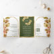 Boho Earthy Floral Olive Green QR Code Wedding Dreifach Gefaltete Einladung