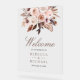 Elegant wedding welcome sign featuring beautiful flowers and modern typography.