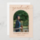 Boho Erdtöne und einfache trendige Skriptbogen Foto Abschluss Ankündigung.