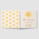Dieses Gästebuch mit dem Thema "Ein wenig Sonnenschein ist fast hier" in der stilvollen Schriftzeichen-Typografie mit niedlicher, gelber Aquarellsonne. Die Rückseite ist mit einem Sonnenmuster dekoriert. Einfach anpassbar. Original Wasserfarbe © Michele Davies.