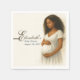 elebrate the upcoming arrival of your little one with this elegant watercolor baby shower napkin featuring a serene illustration of an expecting mother in a soft blue dress. Perfect for a gender-neutral or girl-themed baby shower, this design blends modern simplicity with timeless charm. The customizable name and date make it a meaningful keepsake for guests. Ideal for brunch, lunch, or afternoon tea celebrations, this napkin adds a refined and personal touch to your baby shower decor.
