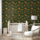 Boho Eleganter Herbst Blätter grün orange gelb Tapete