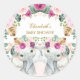 Adorable Dschungelmotive Rundaufkleber mit zwei süßen Elefantenbabys und üppigen tropischen Blätter und Blumenarrangements in rot, violett, grün und gold. Matching Artikel in unserem Shop verfügbar!