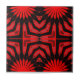 Das Design dieser Keramik-Kachel ist durch symmetrische Muster gekennzeichnet, die von der Mitte ausstrahlen und ein Gefühl von Energie und Bewegung erzeugen. Das Farbschema ist auffallend, mit einem feuerroten Set vor einem schwarzen Hintergrund. Dieser starke visuelle Kontrast betont die aufwändigen Details des Designs und verleiht ihm eine dramatische Anziehungskraft. Elemente des Musters ähneln Stammes- oder ethnischen Motiven und verleihen der Kachel eine exotische und faszinierende Anziehungskraft. Trotz seiner traditionellen Einflüsse strahlt das Design der Kachel eine moderne Ästhetik aus. Die kühnen Farben und die dynamischen Muster verleihen ihm einen zeitgenössischen Flair, der ihn zu einer herausragenden Ergänzung zu jedem modernen Innenbereich machen würde.