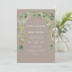 Diese stilvolle rustikale Hochzeitseinladung besticht durch einen zarten, türkisfarbenen Eukalyptus-grünen Bogen. Personalisieren Sie es mit den Namen der Paare in weißen Sans Serif Schriftart auf einem neutralen taupe Hintergrund. Die Rückseite der Karte ist solide Taupe.