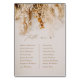 Eine romantische, moderne Hochzeit im Herbst-Tischkarte aus Foto mit einem neutralen Blumenstrauß in Weizen-, Ocker- und Rosttönen.