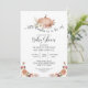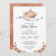 Schöne erdfarbene, neutrale Blume mit moosgrünen, sienna und braunen Blättern. "BOHO Fall Pumpkin Blumenkürbis Herbst Leaf Pampas Grass Baby Dusche Einladung." Trendy Erden Ton Farbpalette mit Pfirsich, Kupfer, Terrakotta, Bernstein, Sienna und abgestuften Salbei mit Elfenbein und Pfirsich Blume. Alle Kunstwerke wurden von Audrey Jeanne Roberts, einer international anerkannten Künstlerin und Designerin, gemalt und grafisch entworfen. Urheberrecht.