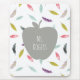 Grauer Apfel über einer bohfarbenen Wasserfarbe inspiriert Federmuster.
