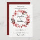 Boho Feather Burgundy Rose Wreath Wedding Einladung