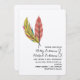 Eine bohemianische inspirierte Hochzeitseinladung, in der zwei Federn illustriert werden. Personalisieren Sie den Text.