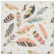 Hübsche Boho-Federn in den Farben aquamarin blau, gold, dunkelgrau, staubig pink und creme schweben auf einem weißen Hintergrund auf diesem einzigartigen Stoff. Ideal für viele Haushalts- oder Handwerksprojekte oder Kleidung.