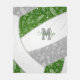 Diese leyball-thematische Fleecedecke zeigt das realistische Bild eines abstrakt überdimensionierten Volleyballs mit grünen, grauen und weißen Paneelen - ein durchgängiges Doodle-Muster aus Paislies, Blume und Federn in Weiß bedeckt die grünen und grauen Volleyballfelder - personalisiert mit dem Namen und Monogramm, dem Varsity Letter oder der Jersey-Nummer - von Katz_d_zynes