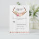Boho Floral Antler Rustic White Wood Wedding RSVP Karte