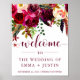 Dieses trendige Begrüßungszeichen mit hübschen Aquarellfarben-Blume in lebhaften Marsala-, Wein-, tiefgrün-, rot- und lila-Tönen und passender moderner Typografie.