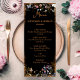 Fügen Sie Ihrem Empfang eine elegante Touch mit unserem Hochzeitsmenü des Boho Floral Black Butterfly Garden hinzu. Dieses Menü ist für eine Hochzeit am Abend konzipiert und bietet einen schwarzen Hintergrund mit skurrilen Wildblumen und zarten Schmetterlingen. Das Vintage Blumendesign und die Boho-Ästhetik schaffen einen charmanten und raffinierten Look und passen perfekt zu Ihrer Gartenhochzeit.