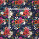 Farbenfrohe Blumenmuster mit weißen, roten, orangefarbenen und rosa Blume und Beeren auf marinebasischem Hintergrund.