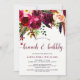 Dieser trendige Brunch und die Blubbly-Einladung besticht durch hübsche Aquarellfarben-Blume in lebhaften Marsala-, Wein-, Tiefgrün-, Rot- und lila Farbtönen und passender moderner Typografie.