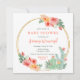 This rustic and boho baby shower invitation features watercolor tropical flowers and cactus plants. The text combines handwritten script and serif fonts for a stylish and modern look. This is perfect for a summer baby shower.