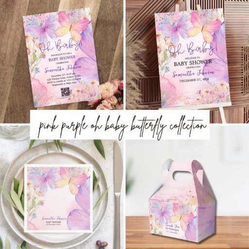 Pink Purple Floral Oh Baby Butterfly Baby shower Designt von BiAs Shuja