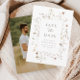 Boho Blumenrahmen Wildblume Hochzeit speichern das Datum Ankündigung. Auf der Rückseite ist ein Foto. Klicken Sie auf die Schaltfläche Bearbeiten, um dieses Design anzupassen.
