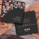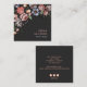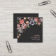 Handgemalt Stil whimsical vivivid Blumen blüht auf einer schwarzen, einzigartigen quadratischen Visitenkarte mit Ihrem Namen und Titel. Pfirsichfarben, Rose, Grün, Blau und Pastellviolett. Passen Sie die Einstellungen auf der Rückseite der Karte an. Ihr Name und Titel sind farbig, ein Social Media Icons auf der Rückseite in einem pfirsichfarbenen Rosa, um den Floralen zu entsprechen.
