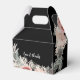 Elegante, blühende, schwarze Gaumenkiste mit romantischem Blau und Grün. Passen Sie die Namen des Paares und das Hochzeitsdatum an. Ein zeitloser Sake und perfekt für Leckereien oder Dankesgeschenke.