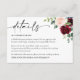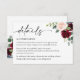 Boho Burgundy und Blush Blumenzettel Hochzeitsdetails Eintrittskarte. Diese Karte zeichnet sich durch boho burgundy und rot Rose und Blume mit zwei modernen hochklassigen Schriftart aus, die die Trends der heutigen und zukünftigen festlichen Veranstaltungen prägen.