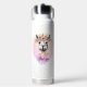 Eine hübsche, aber funktionelle Wasserflasche für Arbeit, Fitnessraum oder Zuhause. Dieses einzigartige Design verbindet Western und Böhmen mit einem Zen-Lama und einer Wildblume-Krone. Das Monogramm kann personalisiert sein.