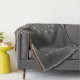 Boho Flower Line Art Drawing Monogrammed Wedding Throw Blanket in Soft Black