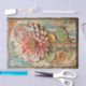 An intricate boho inspired flower design with dimensional petals in warm terracotta, blush pink, and ivory tones, set against a textured shabby chic background of teal, bronze, and distressed beige. The layered detailing and embossed foliage give it an artisan, hand crafted look, making it ideal for romantic and vintage inspired projects. Artwork similar to a mixed media painting with raised relief textures…..COLOR COMBINATIONS: