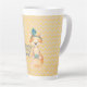Die hübsche latte Tasse zeigt "Liebe macht die Welt runden" Zitat in modernen Schriften mit einer bezaubernden Boho fox Aquarellbilderdarstellung auf einem Zickzack Musterhintergrund